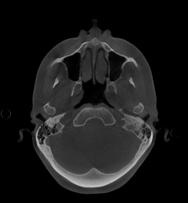 Imagen 3: Vista axial o transversal de CBCT de cráneo completo para cirugía ortognática (FOV 23×26). Imagen aportada por RD3D.